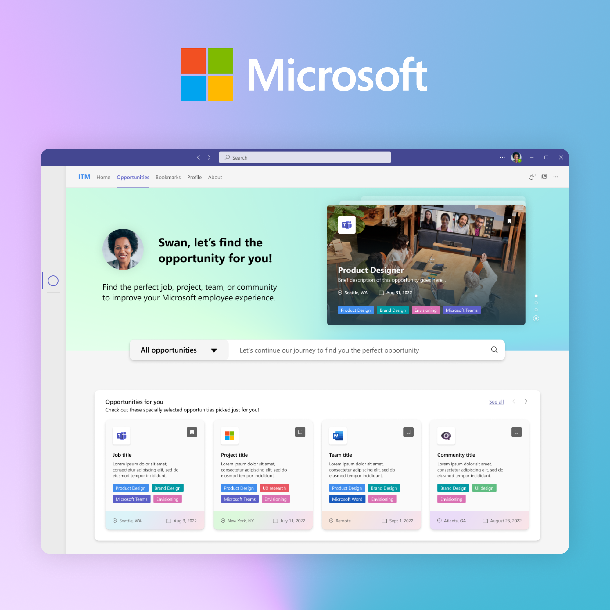 I’m a Chicago based product and visual designer working across product design, systems thinking, and brand design to solve complex problems at scale. I currently lead design on enterprise employee experience software at Microsoft, driving measurable business impact.